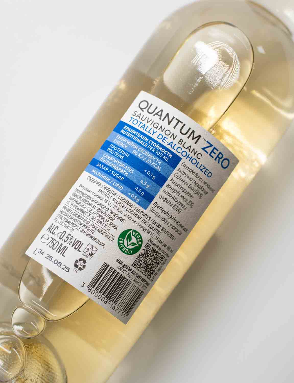 Domaine Boyar Quantum Zero Sauvignon Blanc v nealkoholické verzi představuje moderní přístup k vínu z bulharska bez alkoholu,