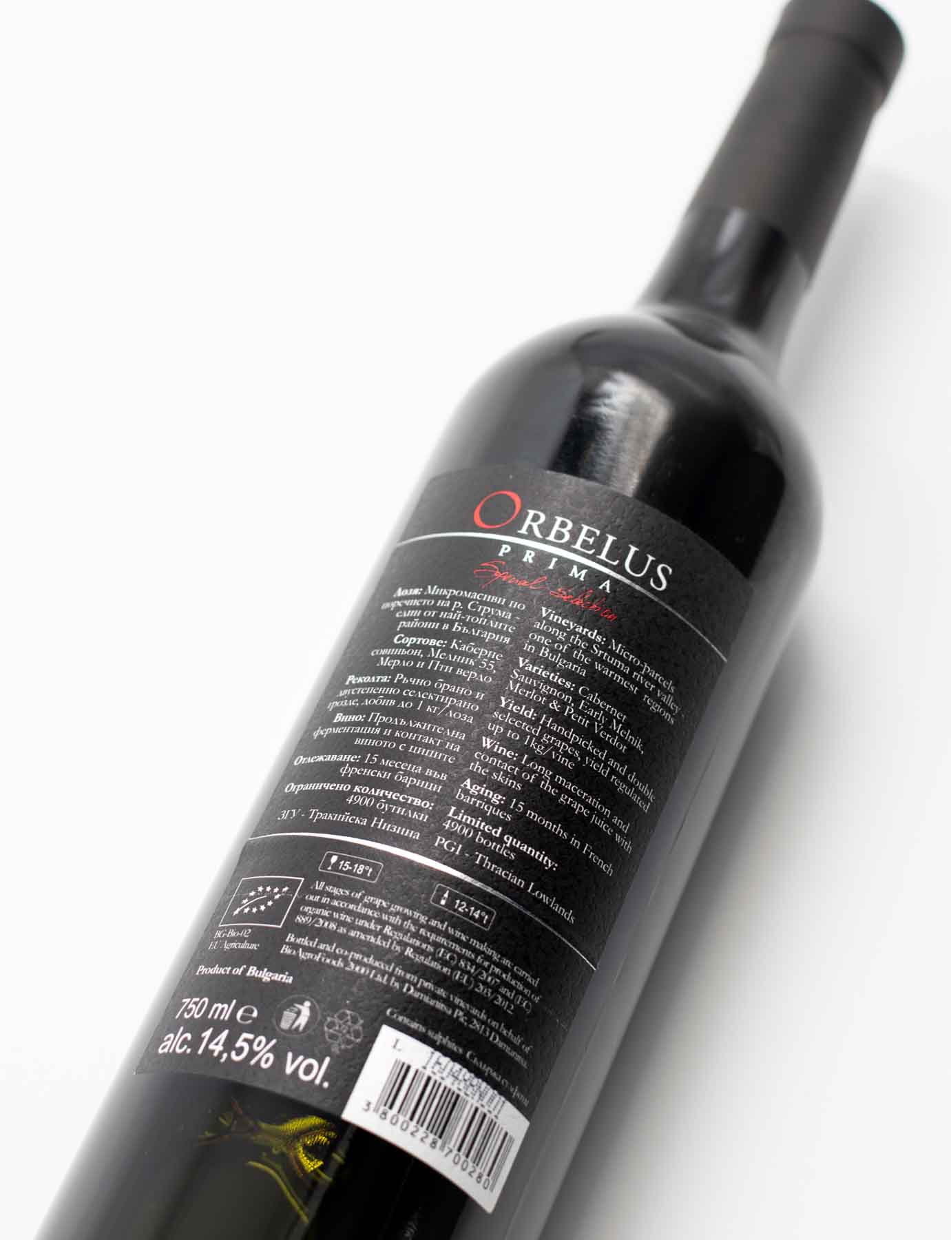 Orbelus Prima Special Selection je špičkové červené víno s chráněným zeměpisným označením Thrácká nížina, vyráběné pouze v omezeném množství 4900 lahví.